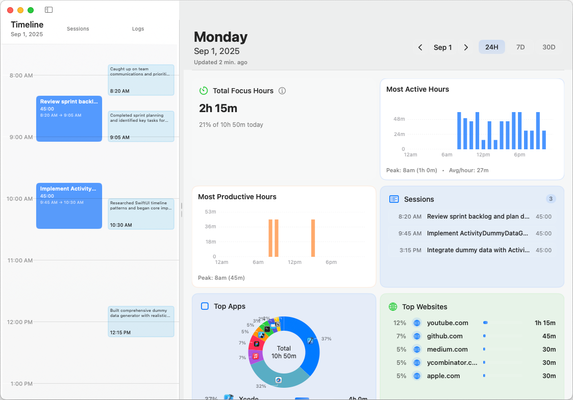 "It keeps a little text at the top of my screen that reminds me of what I'm doing!"