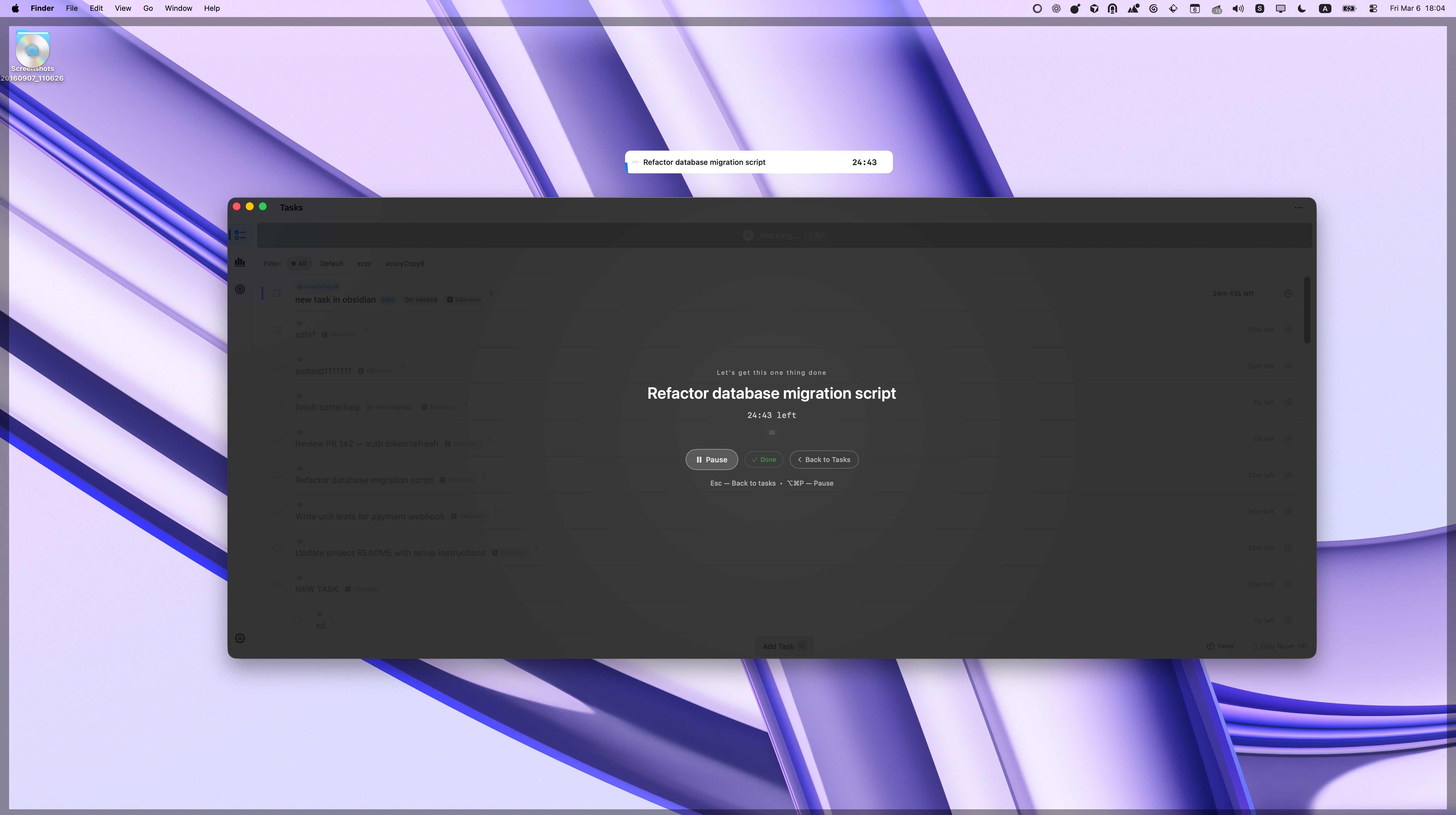 Keep your focus session visible with an always-on-top floating timer window on your Mac.